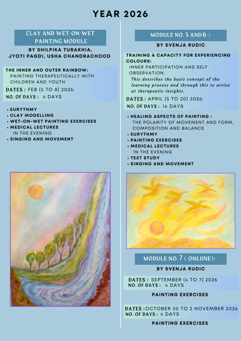 Course structureArt Therapy can accompany all disease treatment, physical or emotional. Further Training Faculty Team Course structure How to Apply Rudolf Steiner Painting School Course Contact Upcoming Events 3 year Further Training in Anthroposophic Art Therapy